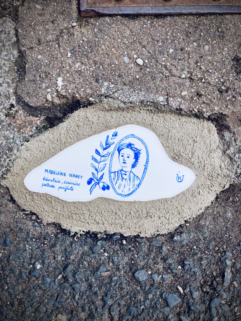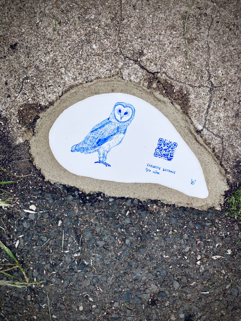 The themes of the painted scenes installed in the cracks of the sidewalks aure inspired by local fauna and flora (apple tree of Caux, western barn owl, green frog), landscapes (view of the viaduct of Barentin) or even famous local women like Madeleine Vernet, educator and pacifist writer.